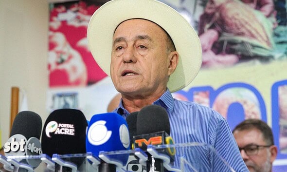 O prefeito de Rio Branco, Tião Bocalom (PL), e o presidente da Associação Comercial, Industrial, de Serviço
