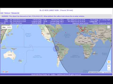 De acordo com o Satflare, o objeto SL-23 R/B fez a reentrada em 27 de janeiro na área demarcada com o círculo abaixo, na região que compreende o Acre e Rondônia no Brasil e o Peru. A reentrada estava prevista  para 27 de janeiro às 18:10 UTC, com variação de 9 horas, segundo o site Aerospace. Segundo mensagem oficial  da USSTRATCOM o satélite R/B SL-23 voltou a entrar na atmosfera em 27 de janeiro de 2018 às às 23:32 UTC com um erro aproximado de +/- 1 minuto (s).