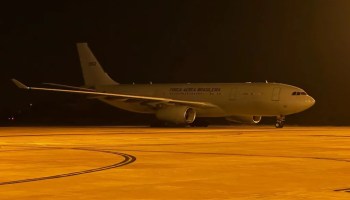 O primeiro avião de resgate trazendo brasileiros de Israel pousou em Brasília por volta das 4h10 desta quarta-feira (11). A aeronave KC-30 da Força Aérea Brasileira (FAB), com 211 passageiros, decolou de Tel Aviv às 14h12 (horário de Brasília) de ontem (10) e fez voo de cerca de 14 horas direto para a capital federal.