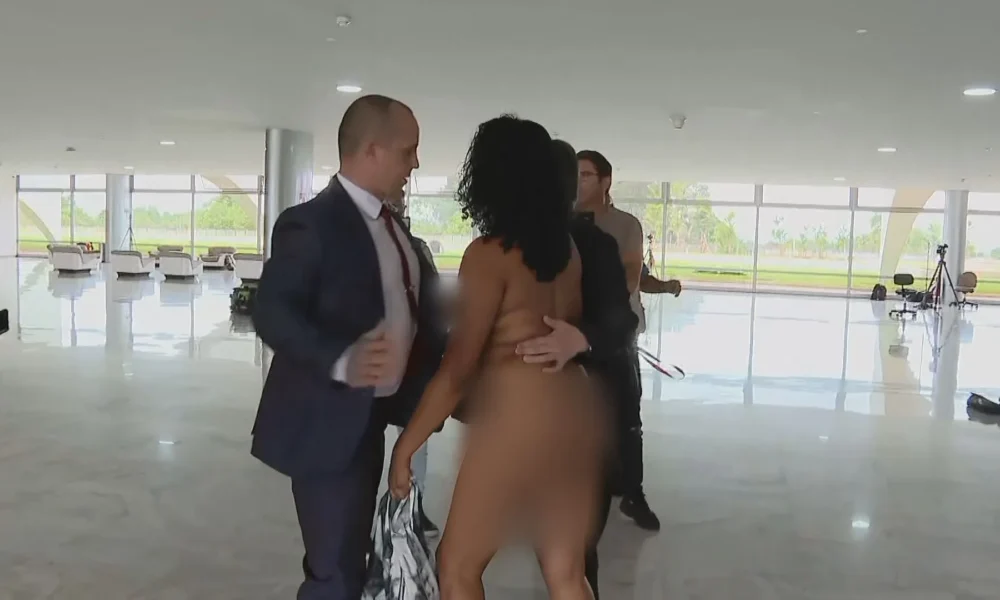 Médicos e seguranças acompanharam uma mulher que tirou a roupa após tentar entrar no Palácio do Planalto nesta quarta-feira (30). Segundo a assessoria do governo, ela pedia para se encontrar com o presidente Luiz Inácio Lula da Silva (PT) e falava palavras desconexas e incoerentes.