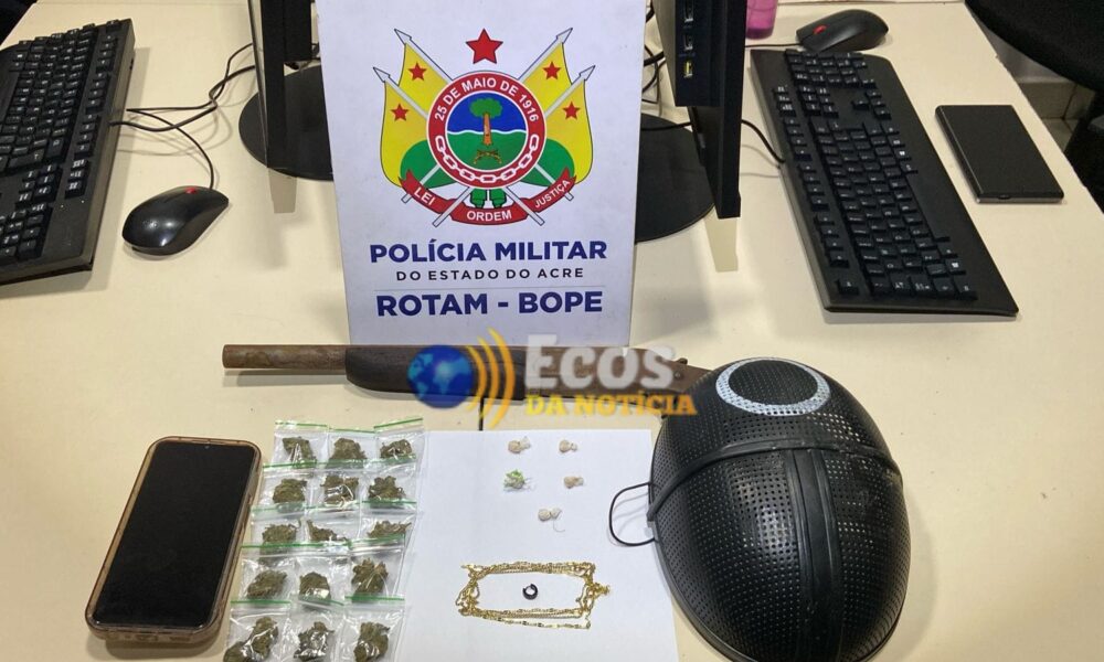 Na noite desta última segunda-feira (24), policiais militares da Companhia ROTAM, do Batalhão de Operações Especiais (BOPE), apreenderam um adolescente de 16 anos por posse ilegal de arma de fogo e tráfico de drogas na Travessa Campinas, no bairro Airton Sena, em Rio Branco. O jovem, apesar da pouca idade, já é conhecido das autoridades e esta é a quarta vez que é detido por crimes como roubo, tráfico e porte de arma.