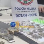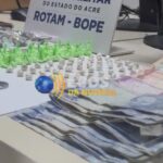 Na noite deste domingo (23), policiais do Grupamento Ostensivo Tático Móvel (ROTAM), pertencentes à Companhia de Operações Especiais (BOPE), realizaram uma operação que resultou na apreensão de drogas e dinheiro, além da prisão de dois suspeitos e da apreensão de um menor de idade em Rio Branco.
