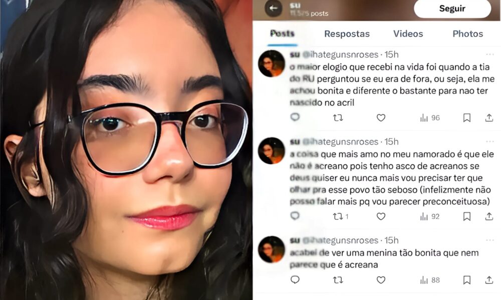Assúria Mesquita, de 20 anos, estudante de Medicina da Universidade Federal do Acre (Ufac), que causou revolta ao publicar no X (antigo Twitter) mensagens ofensivas aos acreanos na última quarta-feira (9), ingressou no curso na 2ª edição do Sistema de Seleção Unificada (Sisu), em 2022, utilizando o bônus regional para estudantes que cursaram o ensino médio em instituições acreanas.
