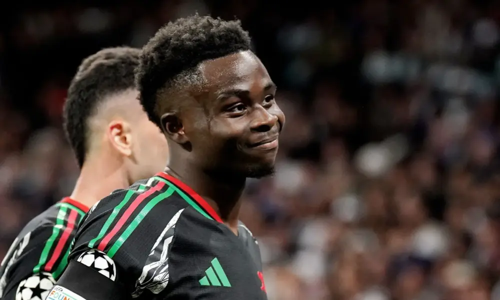 Na segunda etapa, o Arsenal, que poderia segurar o jogo pela vantagem, continuou se lançando ao ataque. Aos 20 minutos, Saka abriu o placar no Bernabéu. Após receber belo passe de Merino, o atacante tocou por cima de Courtois para balançar a rede.