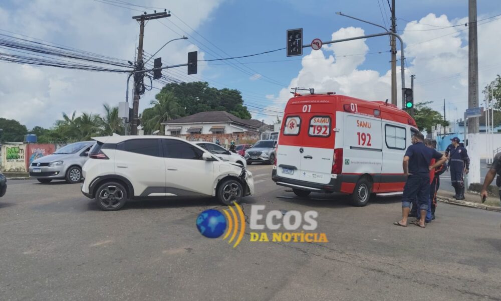 Uma colisão envolvendo uma ambulância do Serviço de Atendimento Móvel de Urgência (SAMU) e um carro de motorista de aplicativo causou danos materiais e congestionou o trânsito na tarde deste sábado (26), no cruzamento das ruas Floriano Peixoto e Rio Grande do Sul, no Centro de Rio Branco.