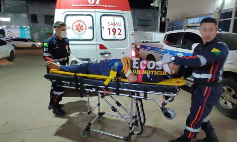 Na noite desta quinta-feira (3), uma colisão entre um carro e uma motocicleta deixou um jovem ferido na Avenida Sobral, no bairro Plácido de Castro, região da Baixada da Sobral, em Rio Branco.