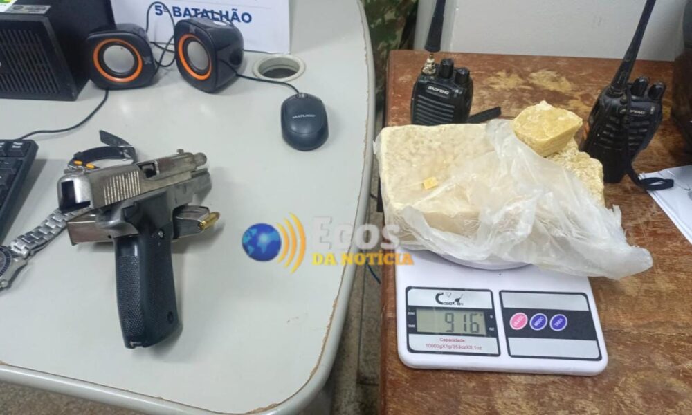 Durante a abordagem, os policiais encontraram um homem nos fundos da casa. Após resistência inicial, ele foi contido e, em revista pessoal, os agentes localizaram uma pistola calibre 9mm, marca Norinco, carregada com 15 munições. Em sua mochila, foram encontrados 131 gramas de substância semelhante à cocaína e 234 gramas de material análogo à maconha.