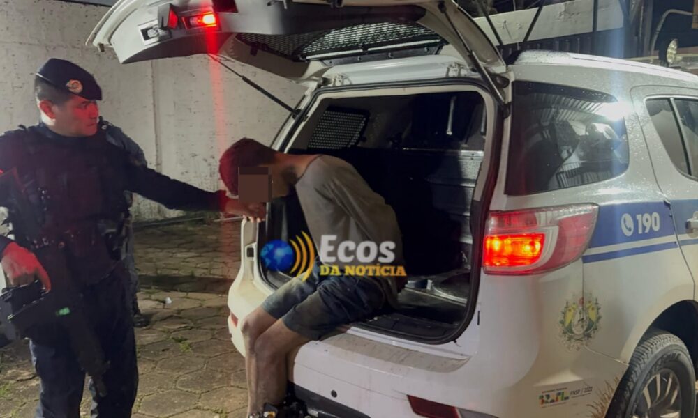 Um adolescente de 14 anos foi apreendido na noite desta quinta-feira (10), após trocar tiros com policiais militares da Força Tática do 2° Batalhão em uma área de mata localizada na Rua Baguari, bairro Taquari, no Segundo Distrito de Rio Branco. Com ele, foi encontrada uma pistola calibre 380 municiada, além de galões de gasolina que seriam utilizados em um ataque a rivais de facção.