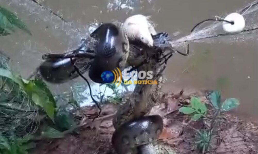 A cena foi registrada em vídeo e rapidamente ganhou repercussão nas redes sociais. Nas imagens, é possível ver o animal forçando a malhadeira na tentativa de alcançar o peixe. Em tom de brincadeira, um dos moradores comenta: “A sucuruju tentou comer o piau, mas hoje nós é que vamos comer ela!”