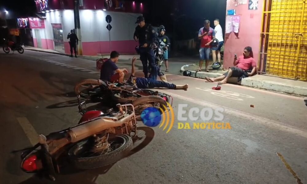 Um acidente de trânsito envolvendo duas motocicletas deixou o motoboy Caio Henrique de Andrade Pereira, de 25 anos, e Arqueleu Gomes da Silva, de 58 anos, feridos na noite desta quarta-feira, 30, na Avenida Antônio da Rocha Viana, no bairro Vila Nova, em Rio Branco.