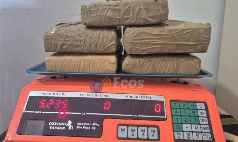 Na mochila da menor, os policiais encontraram cinco tabletes de maconha do tipo skunk, uma droga de alto teor de concentração de THC. O entorpecente pesava ao todo 5,235 quilos e está avaliado em aproximadamente R$ 52.150.