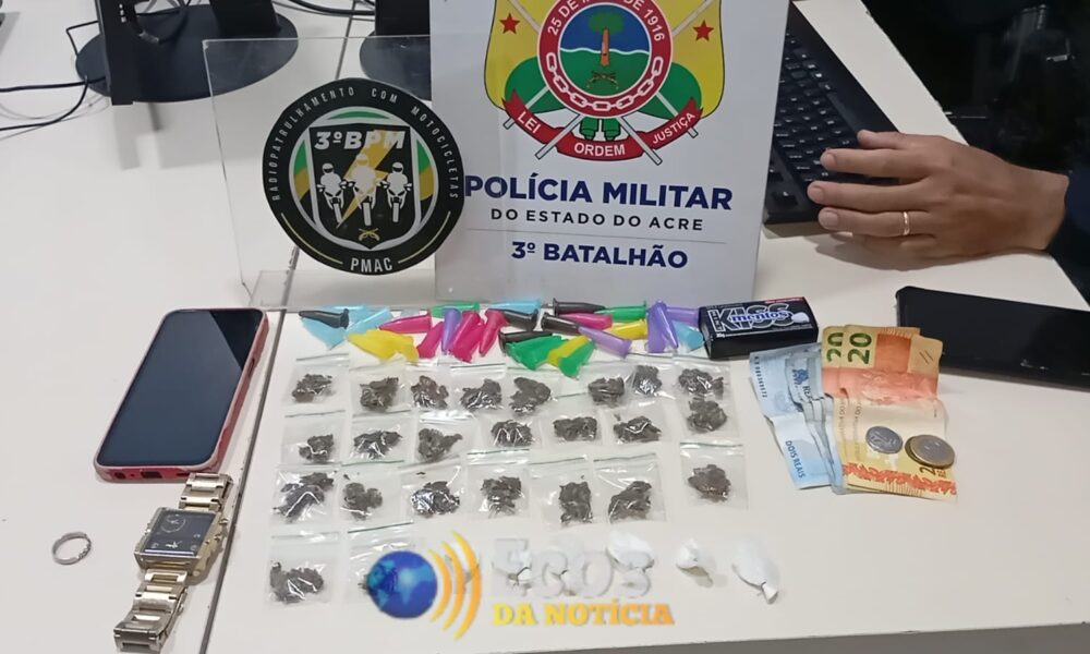 Uma ação de Policiais Militares do RPM do Terceiro Batalhão resultou nas prisões de José Ricardo Figueiredo Neri, de 18 anos; Jailton Nascimento Gifone; André da Silva Rocha; e na apreensão de uma adolescente de 14 anos, na noite desta sexta-feira, 23, pelo crime de tráfico de drogas. A detenção ocorreu no bairro Eldorado, na região do Vale do Açaí, em Rio Branco.