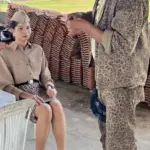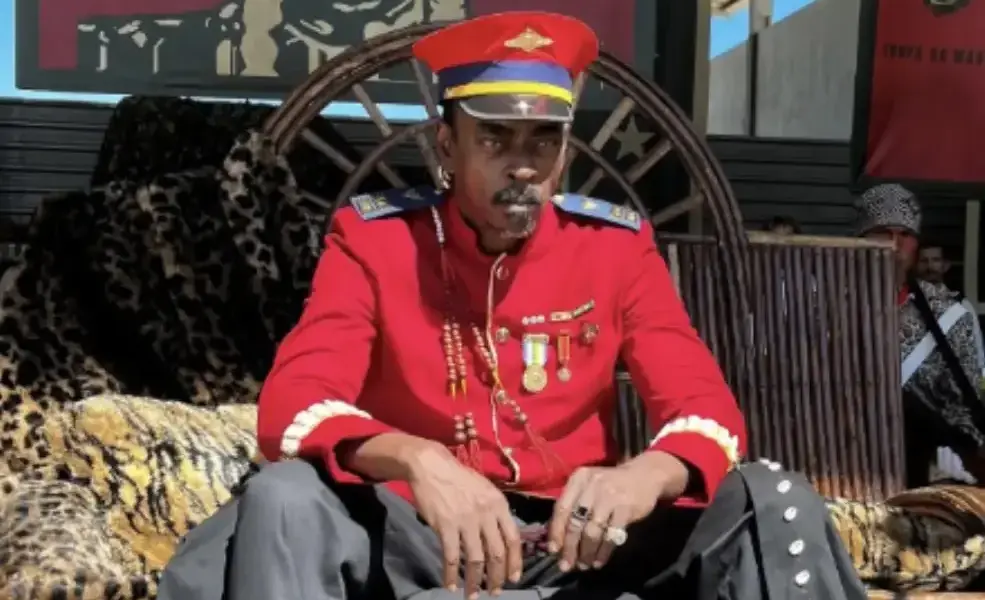 O figurino de seu Jorge, de comandante militar, foi divulgado nessa quarta-feira, 11. Na fotografia, feita por Dan Behr, no cenário montado em um galpão do Polo Moveleiro de Cruzeiro do Sul, seu Jorge está sentado em um “trono“ feito de cipó, com inspiração nos indígenas da etnia Pwyanawa e peles de felinos.