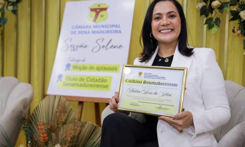 “Honrada, recebo esse título da Câmara Municipal com dois sentimentos. Primeiro, de reconhecimento ao trabalho que desenvolvi aqui em Sena Madureira quando fui senadora da República. E segundo, de compromisso de seguir trabalhando para essa cidade tão especial, agora no Executivo acreano. Muito obrigada. Nunca me esquecerei deste dia”, declarou emocionada a vice-governadora do Acre, Mailza Assis, na noite desta terça-feira, 24, ao receber o Título de Cidadã Senamadureirense.