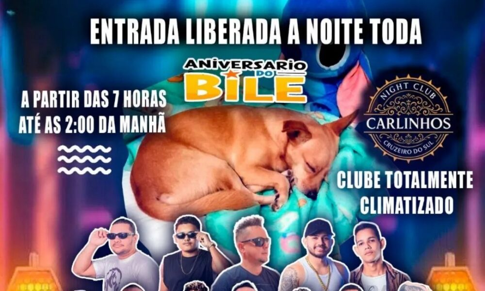 Em Cruzeiro do Sul, no interior do Acre, o aniversário de um cachorro está mobilizando a comunidade e promete ser um dos eventos mais inusitados e animados do fim de semana. Bile, o cãozinho de estimação do morador Carlos Augusto, completa três anos de vida e vai ganhar uma festa digna de celebridade, com direito a churrasco, bolo, shows e DJs — tudo aberto ao público.