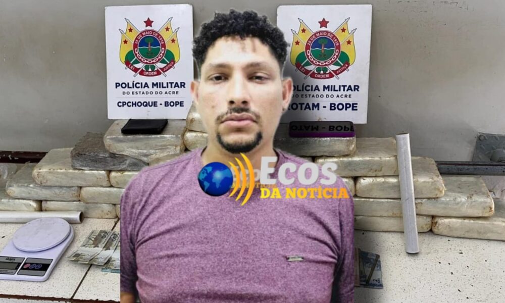 Policiais Militares da Rondas Ostensivas Táticas Motorizadas (ROTAM), do Batalhão de Operações Especiais (BOPE), prenderam Rafael do Nascimento da Silva, de 32 anos, por tráfico de drogas na tarde desta quinta-feira (24), no bairro Eldorado, em Rio Branco.