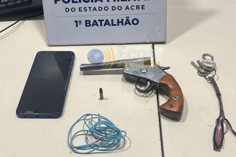 Com base nas informações, os militares iniciaram buscas na área e conseguiram localizar os dois adolescentes. Ao perceberem a presença da viatura, os jovens tentaram se desfazer de um objeto, que posteriormente foi identificado como uma arma de fogo artesanal, calibre .22. Além da arma, um aparelho celular também foi encontrado com a dupla.