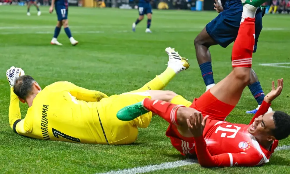 A disputa aconteceu aos 48 minutos do primeiro tempo. Ao dividir com o goleiro do PSG, Musiala, do Bayern de Munique, se lesionou. A reação dos jogadores à imagem da perna do atacante foi de choque, e o camisa 42 alemão foi imediatamente atendido e levado à ambulância de maca.