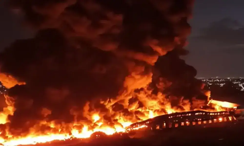 O fogo se espalhou rapidamente por causa da grande quantidade de materiais inflamáveis no local, como pneus, combustíveis, plásticos e produtos industriais tóxicos. Os funcionários relataram que as chamas começaram após faíscas de solda atingirem um produto químico na linha de produção, onde estavam cerca de cem veículos.