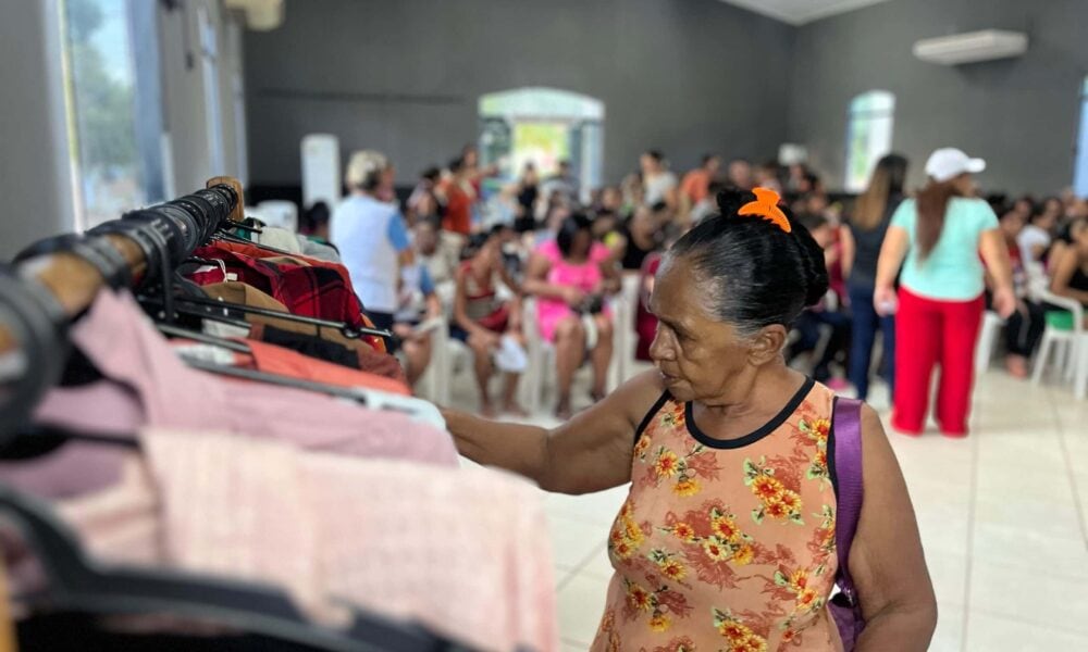“Nunca tinha visto uma ação dessa. Tô aqui há cinco anos e pela primeira vez vejo roupas de qualidade, bonitas, entregues para as mulheres que precisam. Soube pelo WhatsApp, avisei minhas irmãs e trouxe minha sogra pra pegar as peças dela também”, relatou Maria Eduarda Martins, que mora na zona rural num ramal distante 47 km da cidade.