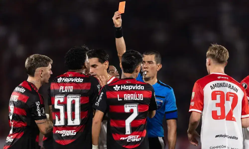 A Conmebol decidiu retirar a punição de Gonzalo Plata, do Flamengo, que foi expulso na partida contra o Estudiantes, pelas quartas de final da Libertadores, em um lance polêmico revisado pelo VAR.