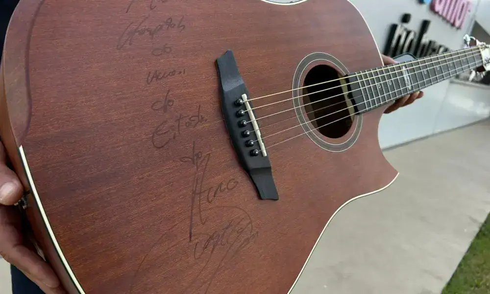 O secretário de Estado de Saúde, Pedro Pascoal, relatou como surgiu a ideia de levar o violão ao Hospital de Amor. “Foi a ideia de uma junção de amigos de tentar essa aproximação com o Gusttavo lá em Cruzeiro do Sul. Foi na ExpoJuruá de Cruzeiro do Sul, fizemos, compramos o violão, levamos ali no camarim, ficamos ansiosos, aflitos, para saber se ia ser possível, se não ia ser possível essa assinatura, mas, quando ele entendeu a causa, uma causa nobre, um violão que seria leiloado no leilão do Hospital do Amor, direito de viver, ele abriu as portas, assinou com muita felicidade, desejando melhorias, desejando um tratamento, uma recuperação, e todos esses pacientes serão beneficiados com a doação desse violão”, ressaltou.