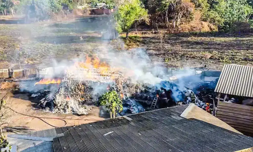 Equipes do Corpo de Bombeiros foram acionadas e trabalham no combate às chamas. A corporação informou que havia risco de o fogo se alastrar para residências próximas, mas a ação rápida dos bombeiros impediu que isso ocorresse.