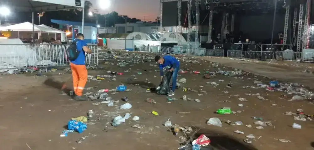 Foram 8 toneladas na 1ª noite, 20 na 2ª, 16 na 3ª e 30 na última noite de evento, somando 64 toneladas de lixo. “ Quando o evento acabava, toda madrugada, nossa equipe começava o trabalho e tudo já amanhecia limpo”, contou o Secretário de Obras, Carlos Alves.