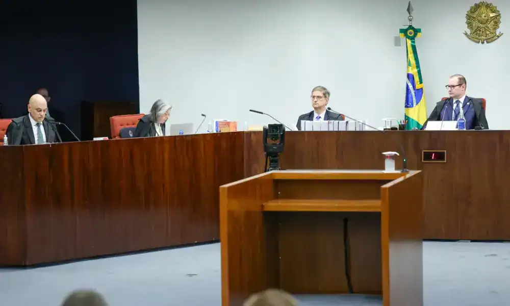 Advogados, jornalistas e interessados em assistir o julgamento da ação penal contra o ex-presidente Jair Bolsonaro e outros sete ex-auxiliares, no dia de hoje no Supremo Tribunal Federal (STF), se depararam com um aviso nas poltronas do Plenário onde acontece o julgamento: “Regras durante a sessão”. O panfleto contém informações sobre o que é proibido e permitido durante o julgamento para quem acompanha a sessão no plenário da Primeira Turma.