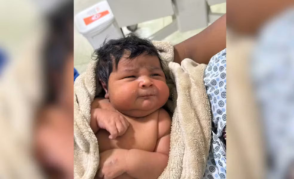 Simone Simikidi Xerente, de 38 anos, se surpreendeu ao dar à luz e saber que o filho nasceu com 6 kg, em Miracema do Tocantins, região central do estado. A mãe não imaginava que Regis nasceria tão grande e, agora, pensa nas roupinhas que comprou para os primeiros meses de vida do filho.