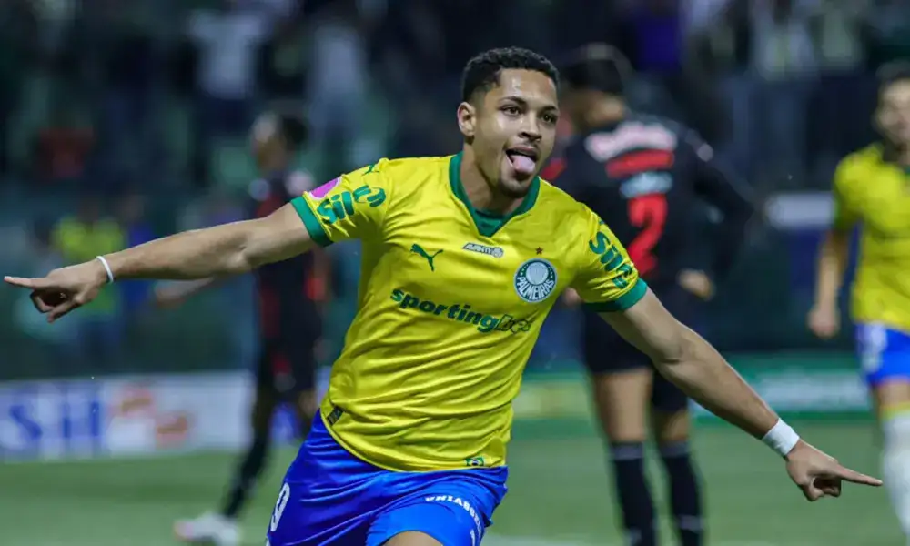 Para fechar a goleada, Vitor Roque anotou seu segundo gol na partida aos 43 minutos, após boa jogada individual dentro da área. O “Tigrinho” chegou a 12 participações em gols nos últimos 11 jogos.