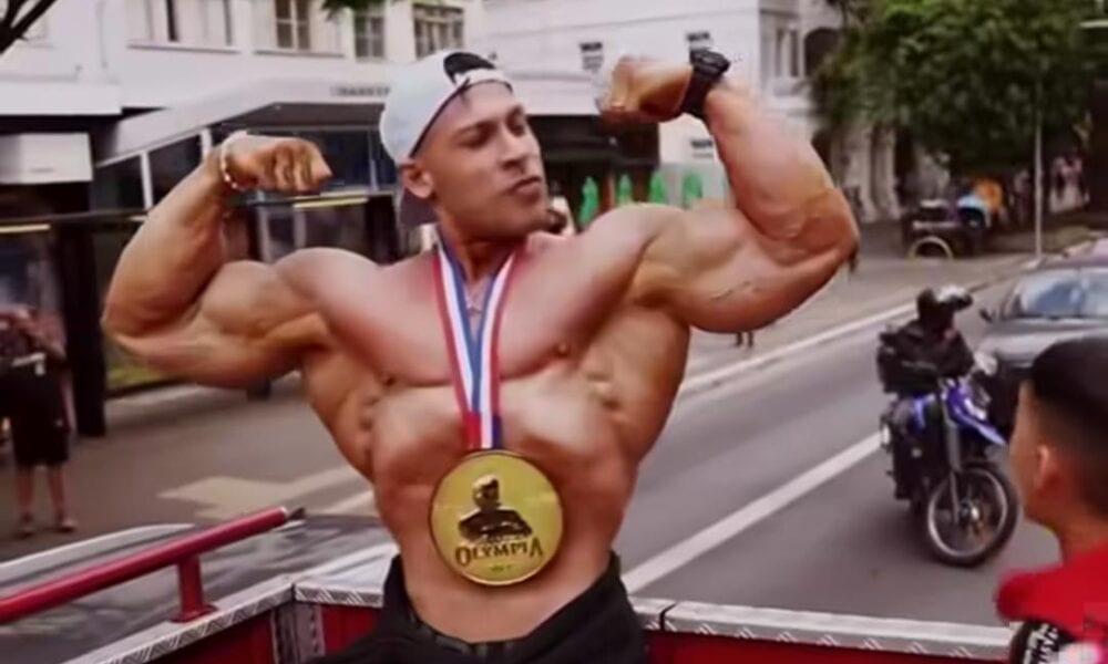 Trazendo no peito a medalha de ouro e nas mãos o troféu que o consagrou campeão da categoria Classic Physique no Mr. Olympia 2025, em Las Vegas, Dino apareceu sorridente, com a bandeira do Brasil nos ombros e ao lado da esposa, Vitória Viana, do treinador Fabrício Pacholok e de sua equipe técnica.