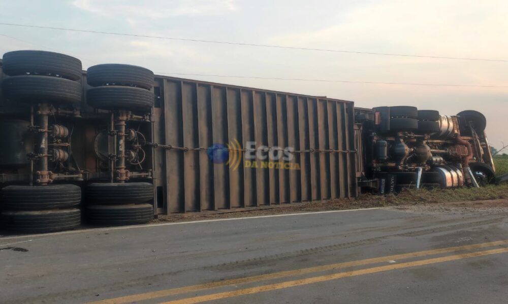 De acordo com informações preliminares, o motorista teria perdido o controle do veículo durante a madrugada, o que fez com que a carreta virasse sobre a pista. Graças à defensa metálica instalada na lateral da rodovia — o conhecido guard rail —, o caminhão não despencou em uma ribanceira, evitando um acidente de maiores proporções.