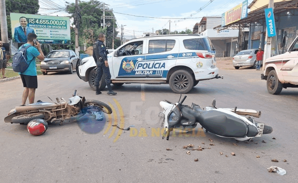 Uma colisão entre duas motocicletas deixou feridos na tarde deste domingo (19) em Brasiléia, cidade localizada na fronteira do Acre com a Bolívia. O acidente ocorreu por volta das 17h, no cruzamento das avenidas Dr. José Manoel Marinho Montes e Rui Lino, ponto que liga as partes alta e baixa do município.