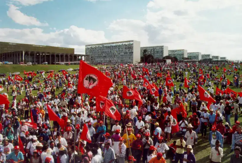 Imagem de manifestação durante o 3º Congresso Nacional do MST, sob o lema "Reforma Agrária, Uma Luta de Todos", em 1995 (Foto: Coletivo de Acervo e Memória MST)