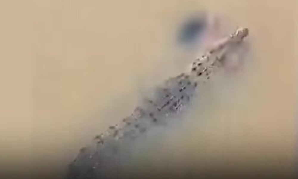 O vídeo, que circula nas redes sociais, mostra o réptil com a vítima na boca enquanto nada. O crocodilo arrastou Soudamini para o meio do rio e realizou o chamado “giros da morte”, movimento típico do animal para dominar suas presas na água.