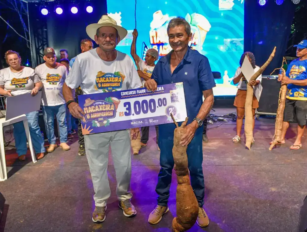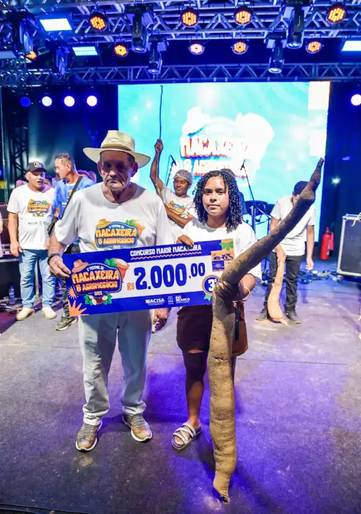 Em meio à alegria do público, o bicampeão celebrou o feito com emoção e humildade. Questionado sobre o segredo para produzir uma macaxeira tão grande e robusta, ele respondeu com simplicidade.“A terra é boa. A gente fica muito feliz, né? Porque ganhar dois anos seguidos é muito gratificante. Graças a Deus conseguimos, com muito trabalho. Estamos há três semanas trabalhando, ajudando no que a gente pode”, disse o produtor.