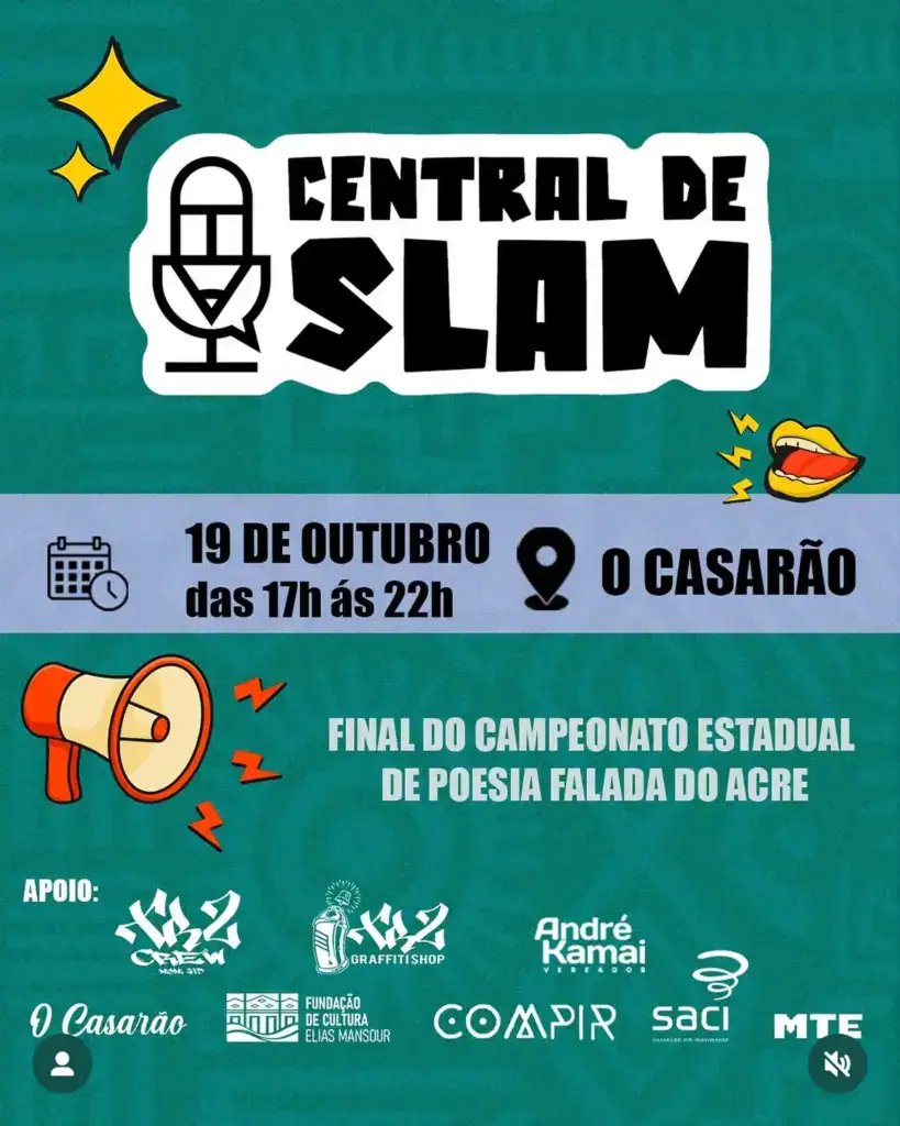 A competição reúne representantes dos slams locais, incluindo os que classificam para a Central de Slam, e vai definir quem representará o Acre no Slam BR 2025, que neste ano acontece em Brasília (DF).
