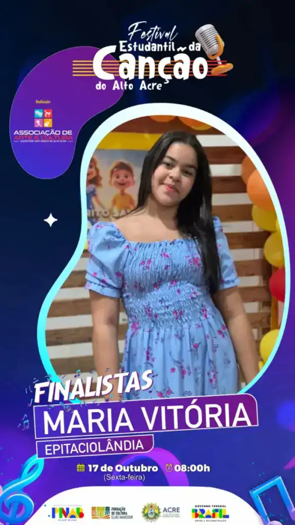 Na Escola Luiz Gonzaga da Rocha, em Epitaciolândia, nesta sexta-feira (17), acontece a Grande Final do I Festival Estudantil da Canção do Alto Acre, evento que celebra o talento e a criatividade dos estudantes das escolas públicas de Brasiléia, Epitaciolândia, Xapuri e Assis Brasil.