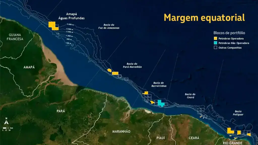 A gerente geral de Licenciamento Ambiental e Meio Ambiente da Petrobras (PETR3;PETR4), Daniele Lomba, que acompanhou o processo de concessão da licença ambiental da Margem Equatorial, informou que as bacias da região são maiores que as bacias somadas do Sudeste, que sustentam a produção da estatal até hoje desde a sua criação, na década de 1950.