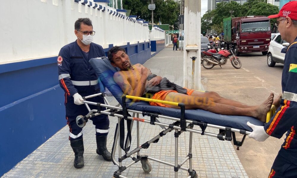 Um homem em situação de rua foi brutalmente agredido na tarde desta quinta-feira (30), no centro de Rio Branco. A vítima, identificada como Edilmo Inácio Pereira, de 51 anos, sofreu uma fratura exposta no antebraço esquerdo, além de ferimentos na cabeça e diversas escoriações pelo corpo.