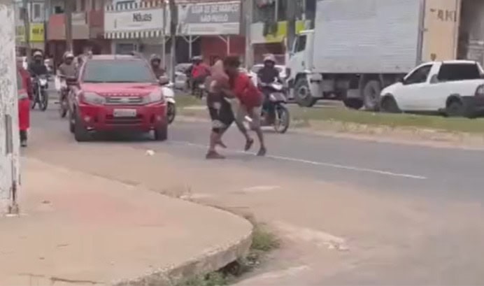 A cena de dois homens brigando chamou a atenção de quem passava pelo Cento de Cruzeiro do Sul na tarde desta terça-feira,31. Eles trocaram golpes na lateral da Avenida Mâncio Lima, próxima à entrada do bairro da Lagoa.