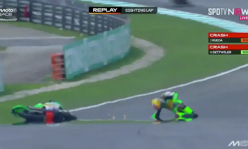 O suíço Noah Dettwiler foi levado a um hospital de Kuala Lumpur neste domingo após um grave acidente na volta de aquecimento para o GP da Malásia de Moto3, uma das categorias de acesso à MotoGP. O piloto de 20 anos sofreu múltiplas paradas cardíacas, uma fratura exposta na perna e perdeu muito sangue. Seu baço e seus pulmões também foram afetados.