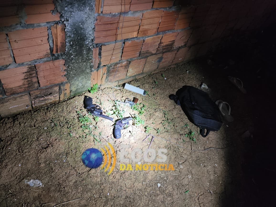 A área foi isolada para os trabalhos da perícia. Após a conclusão, as armas apreendidas e os quatro detidos foram levados à Delegacia de Flagrantes (DEFLA) para os procedimentos cabíveis.