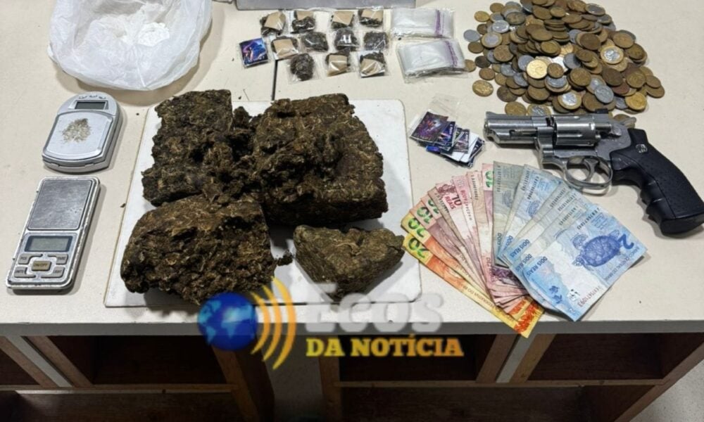 As buscas continuaram dentro da casa, onde os agentes encontraram um simulacro de arma de fogo escondido no interior de um fogão, além de mais drogas e dinheiro. No total, foram apreendidos 1,1 kg de maconha, 40 gramas de cocaína e R$ 240 em espécie.