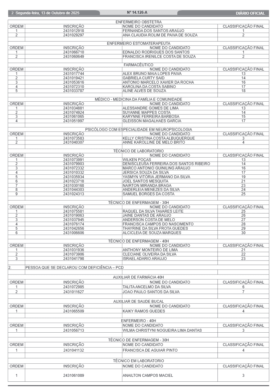 Serão empossados candidatos para os seguintes cargos: auxiliar de farmácia, enfermeiro obstetra, enfermeiro estomaterapeuta, farmacêutico, médico (Medicina da Família e Comunidade), psicólogo com especialidade em neuropsicologia, técnico de laboratório, técnico de enfermagem (30h e 40h), auxiliar de farmácia (40h) e auxiliar de saúde bucal.