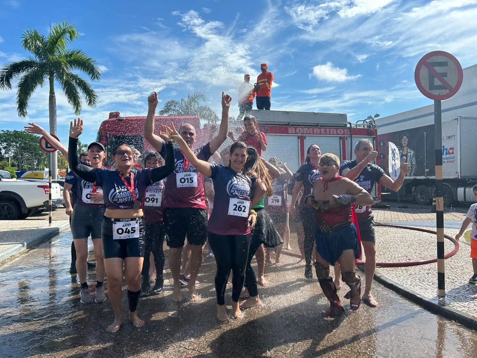 Encerrando a manhã festiva, os participantes puderam aproveitar o tradicional banho de mangueira, realizado pelo Corpo de Bombeiros do Acre (CBMAC).