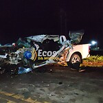 A caminhonete ficou totalmente destruída, e o motorista sofreu trauma torácico, fratura na perna, corte profundo no braço esquerdo, traumatismo cranioencefálico grave e outras lesões pelo corpo. O condutor da carreta sofreu apenas escoriações na perna.
