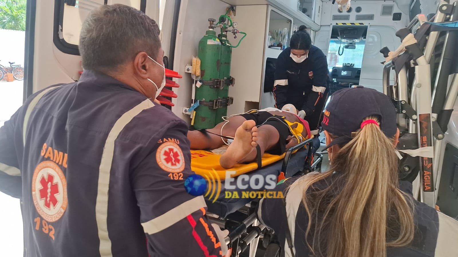 Com o impacto a vítima foi arremessada ao solo, sofreu traumatismo craniano leve, escoriações nos braços, um ferimento no ombro e ficou desorientado. A motorista permaneceu no local e socorreu o adolescente.