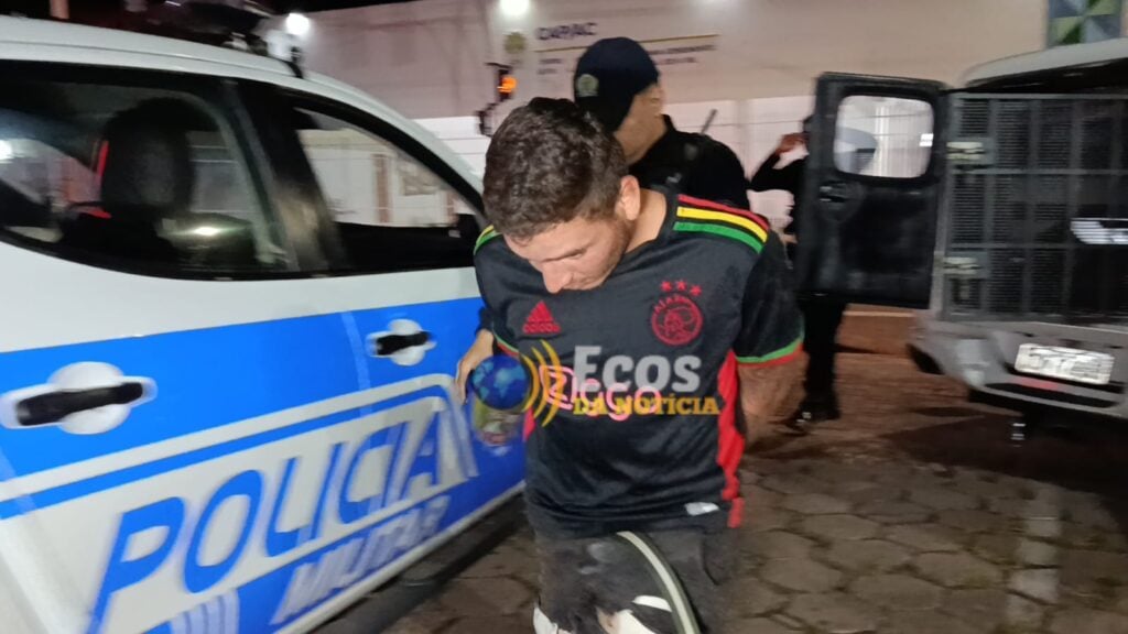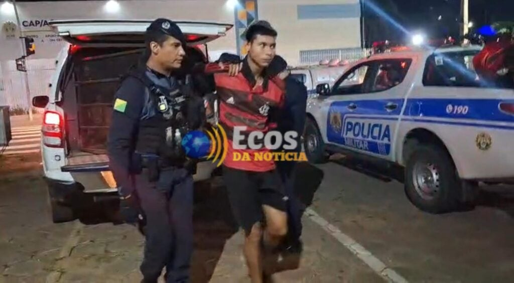 O sinal levou os policiais até o Conjunto Andirá, na parte alta da cidade. Já na madrugada desta sexta-feira (14), a PM cercou uma residência e encontrou os dois suspeitos escondidos no interior do imóvel. Leandro Pereira dos Santos, de 21 anos, e Vitor Lima da Silva, de 18 anos, foram detidos sem resistência.